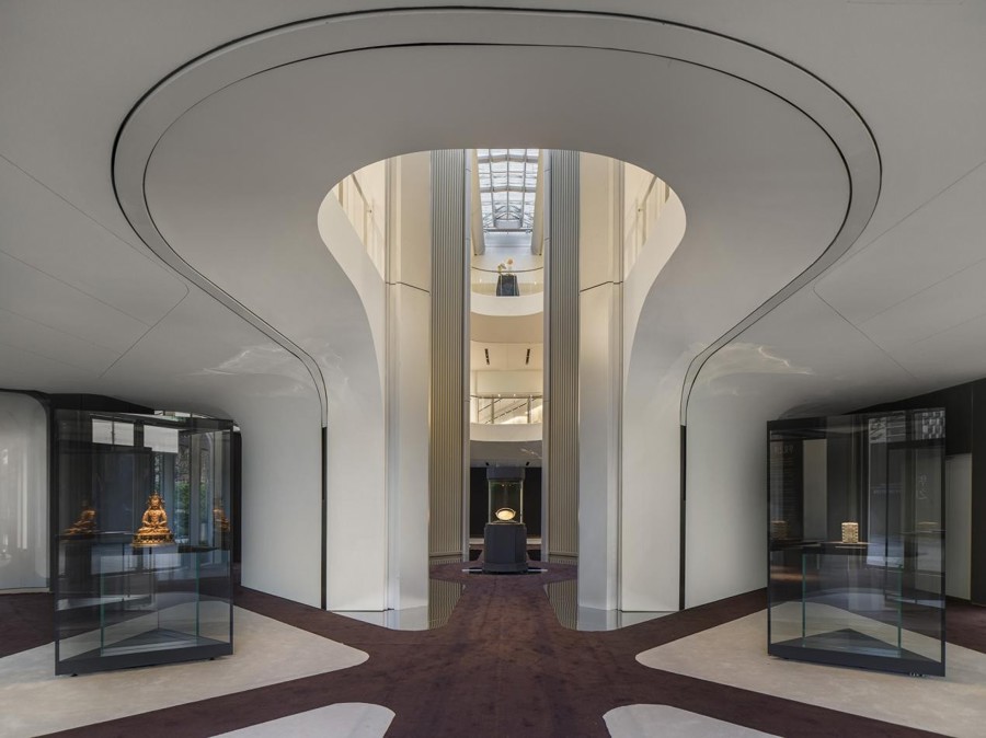 场馆以“花朵叶脉扎根地面、向天空延展无限可能”为设计灵感,呈现由内而外的建筑美学,花瓣立面与城市肌理相得益彰,展馆总建筑面积约5000平方米,采用南北双核布局,设有专业级艺术品陈列展厅、数字展厅、文创商店与艺术沙龙,精巧设计让场馆本身就是一个建筑艺术,成为可以打卡的文艺名片。